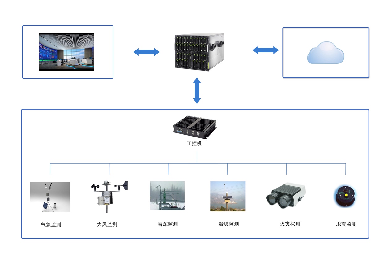 防災減災綜合監(jiān)測預警系統(tǒng)現(xiàn)場級處理單元由核心工控機和外圍傳感器設備組成,部署在水電站、核電站、機場、海港等關鍵場所,主要用于防災數(shù)據(jù)監(jiān)測、數(shù)據(jù)分析和聯(lián)動控制?,F(xiàn)場級處理單元通過專用網(wǎng)絡與監(jiān)控中心進行通信,實現(xiàn)自然災害狀況實時監(jiān)測,進行災害數(shù)據(jù)的收集、分析及處理,生成、傳輸并發(fā)布災害警報信息和緊急處置信息,觸發(fā)相關防災減災系統(tǒng)聯(lián)動,進而減小災害對社會生產(chǎn)和人民生活造成的損失。